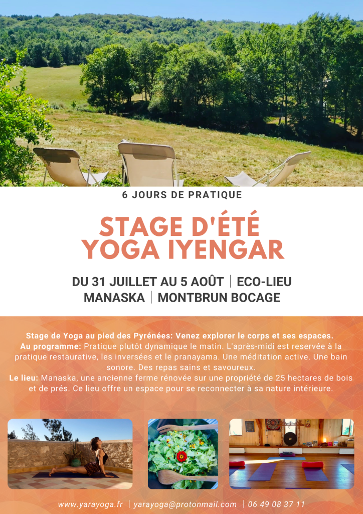 ☀️ Le stage annuel à Manaska est un moment que j’attends avec impatience! Le lieu, Manaska, est un véritable écrin de verdure sur un propriété de 25 hectares de bois et de prés, où nous retrouvons une vie simple, satisfaisante et légère. Quant à la pratique du Yoga Iyengar, elle développe l’intelligence du corps, la compréhension de l’alignement des postures de yoga et la connaissance de votre corps. La pratique permets de soulager ses douleurs physiques et le stress pour aller vers un mieux-être général.