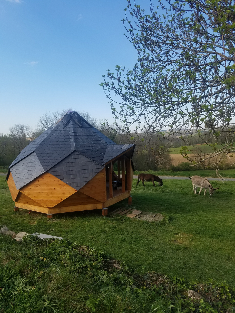 Chacun est logé dans une des deux yourtes, chauffées avec un poêle à bois, et il y a également deux places dans un zôme (petite cabane en bois, voir le photo ci-dessous), avec chauffage électrique (en priorité pour un couple).
