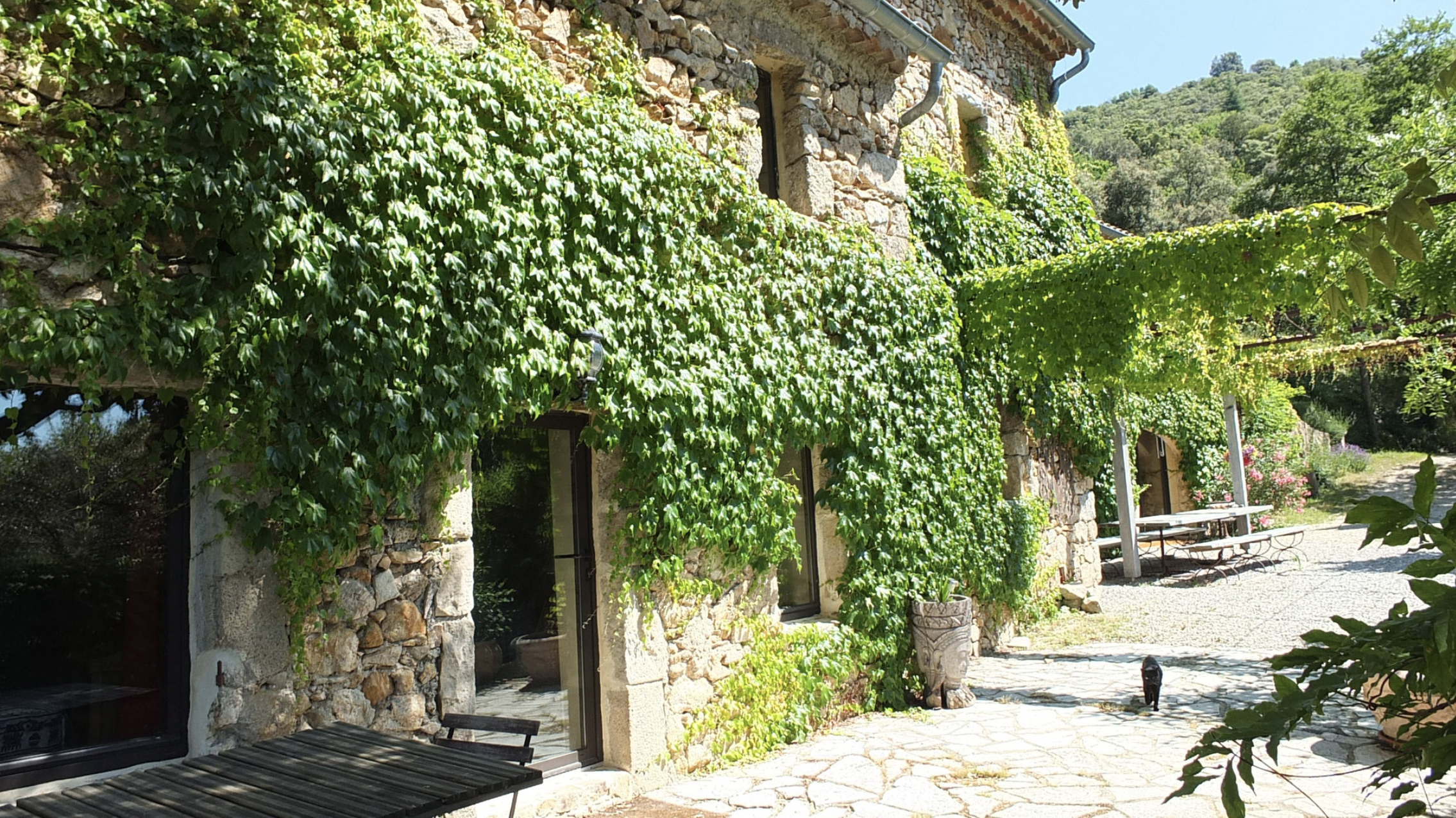 Le gîte est situé sur une propriété de 15 hectares dans une vallée très calme des Cévennes méridionales, au milieu de chênes verts et de châtaigniers. Une magnifique rivière, la Salindrenque, avec ses rochers blancs et ses cascades borde la partie sud de la propriété. L’endroit est tout à fait propice à la relaxation, la contemplation. Des sentiers de randonnée sillonnent les collines aux alentours, et permettront aux amoureux d’apprécier une nature encore très préservée.
