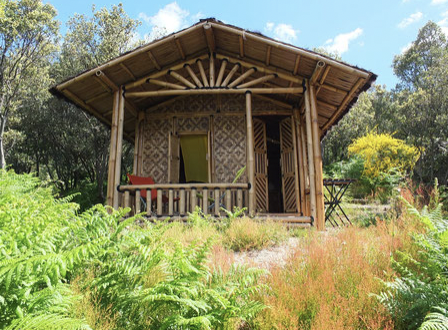 Cabane bambou: Une cabane en bambous originaire d’Indonésie. Elle est équipée d’un lit double. Des toilettes sèches et des douches sont à proximité. Le lieu parfait pour se retirer seul ou à deux…