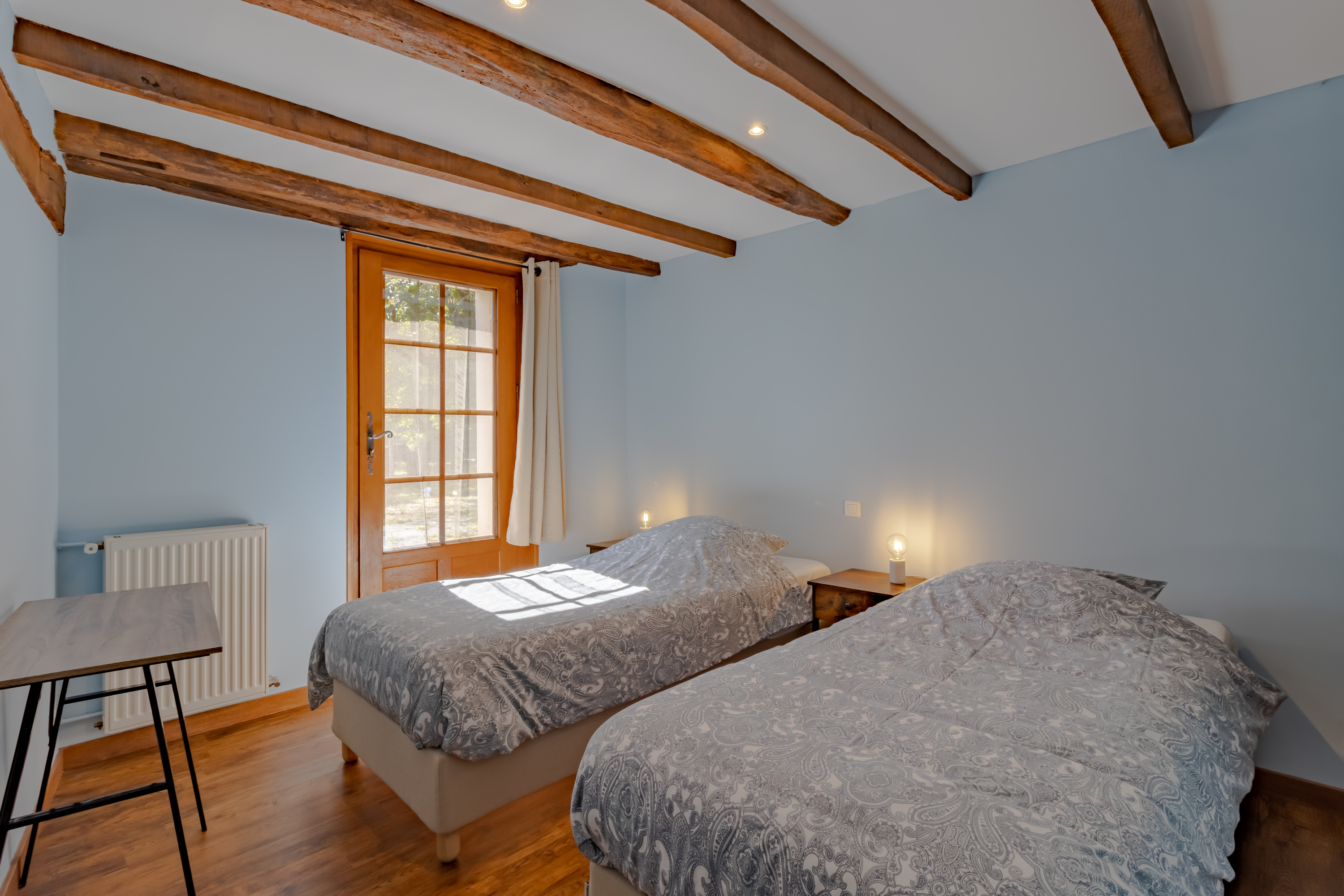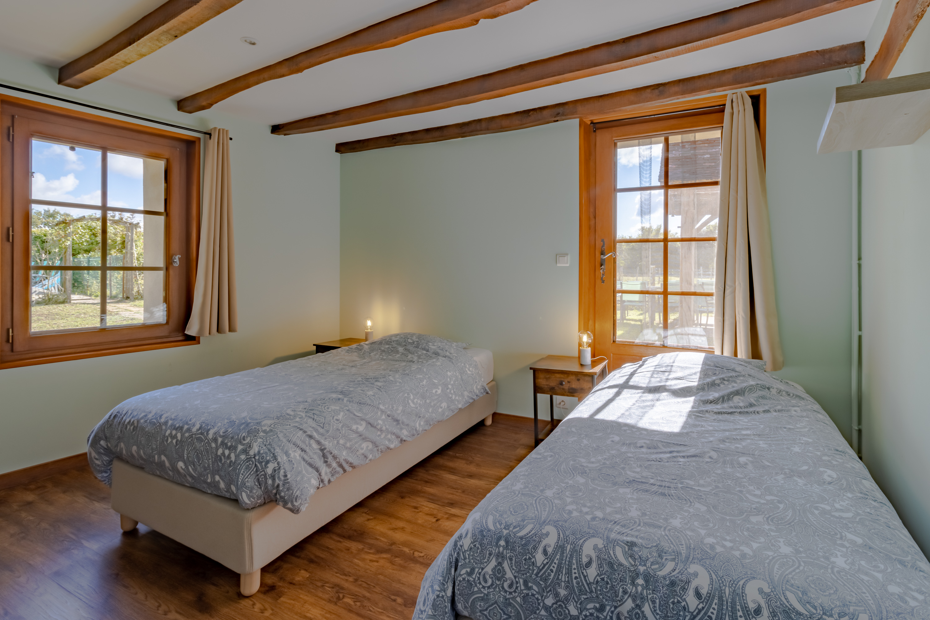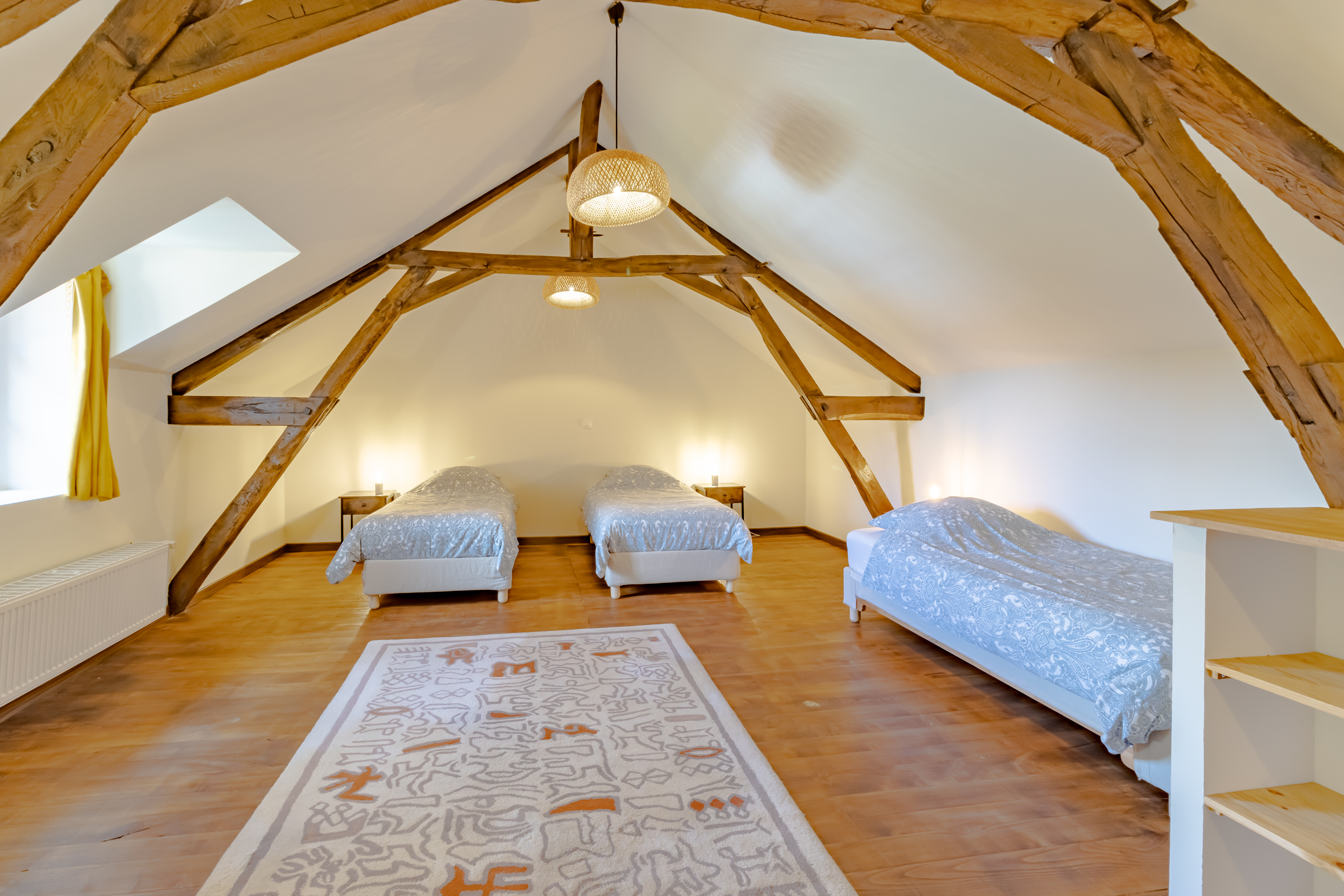 L’hébergement se fait dans les chambres de l’un des deux gîtes à l’Oasis de l’Aube : le Gîte Tulsi et le Gîte Padme. Les chambres peuvent accueillir 2 à 3 personnes. Dans l’un des gîtes, chaque chambre dispose de sa propre salle de bain et de toilettes. Dans l’autre gîte, il y a une salle de bain et des toilettes avec lavabo à chaque étage. Toutes les chambres sont équipées de fenêtres, de rangements et de lampes de chevet.