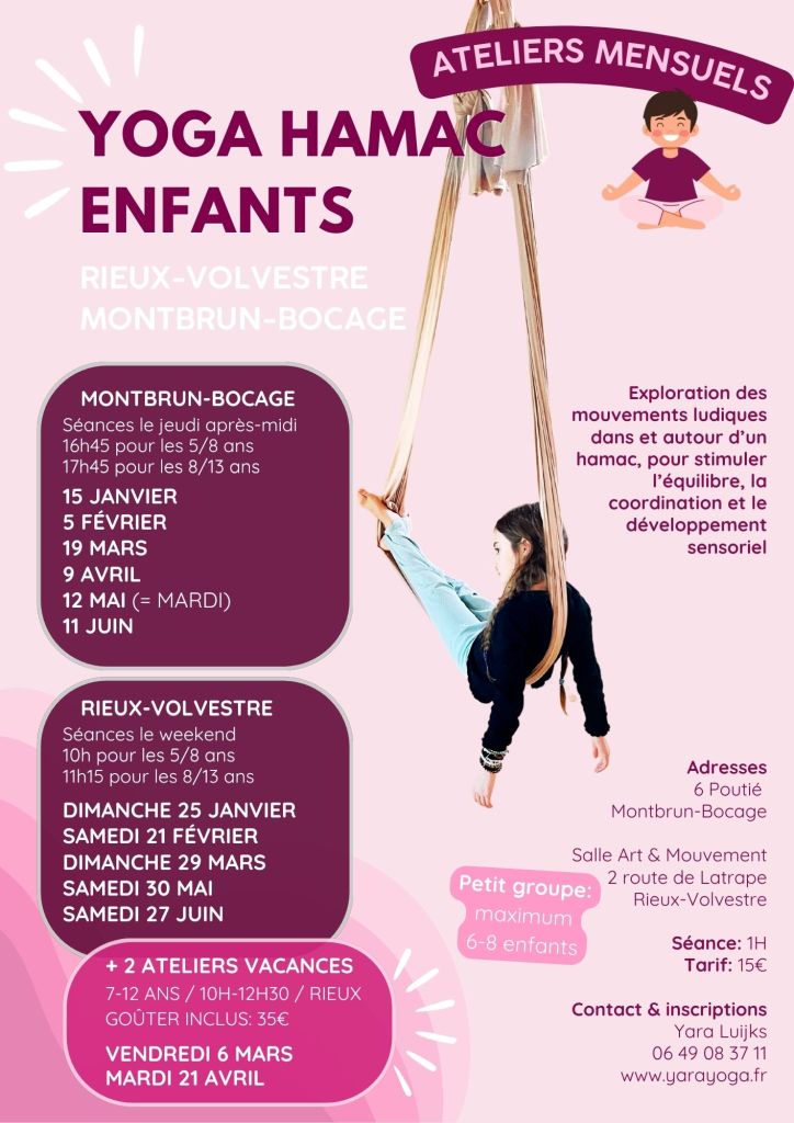 Rendez-vous mensuel pour des séances de yoga aérien pour enfants !